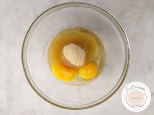 - Montare le uova con lo zucchero e il pizzico di sale fino ad ottenere un composto spumoso