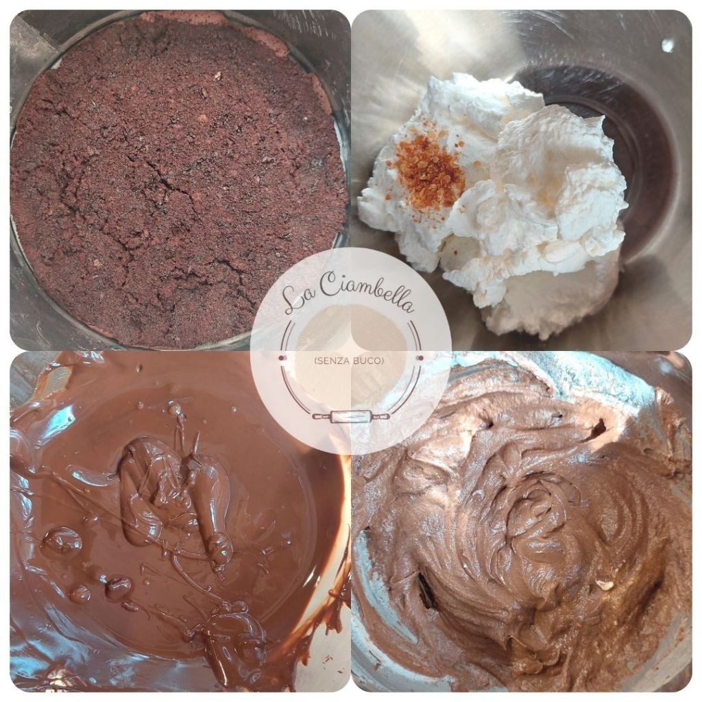 PREPARAZIONE DELLA TORTA MOUSSE AL CIOCCOLATO PICCANTE, MANGO E PERE